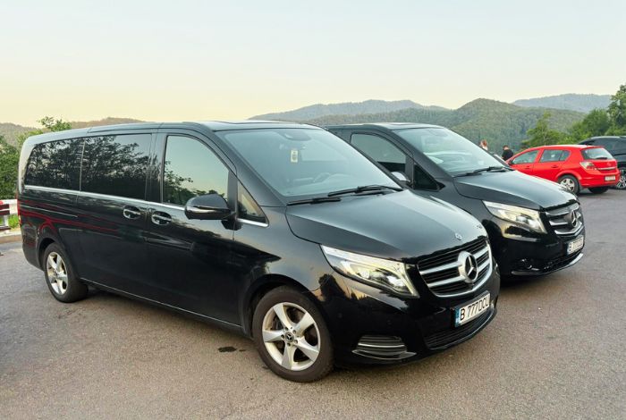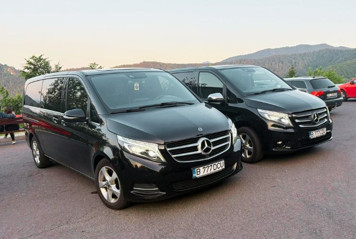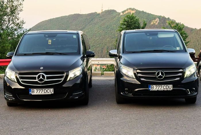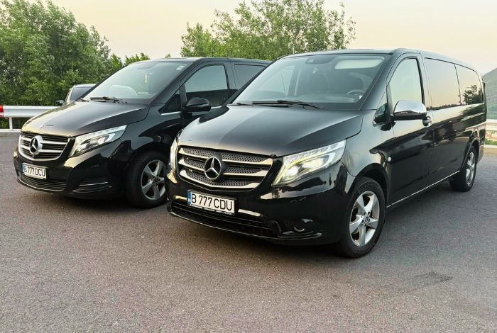 Îți punem la dispoziție mașini gama LUX funcționale, sigure și confortabile, marca Mercedes, modelul Benz V 250 V și modelul Vito Tourer.